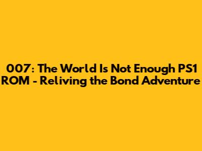 007: The World Is Not Enough PS1 ROM - A Blast From The Past!