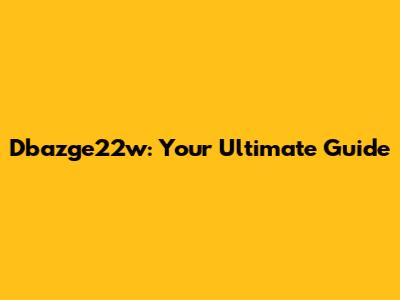 Dbazge22w: The Ultimate Guide