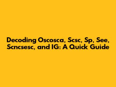 Decoding Oscosca, Scsc, Sp, See, Scncsesc, And IG: A Quick Guide