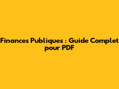 Finances Publiques : Guide Complet Pour PDF