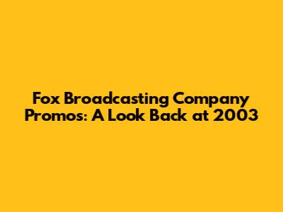 Fox Broadcasting Company Promos: A Look Back At 2003