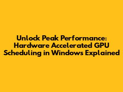Hey gamers and power users, have you ever felt like your graphics card isn't quite hitting its full potential? Maybe you've noticed those annoying stutters in your favorite games or experienced sluggishness when multitasking demanding applications. Well, guys, there's a game-changer lurking in the depths of Windows that could be the key to unlocking smoother, more responsive graphics performance: Hardware Accelerated GPU Scheduling. This isn't some obscure setting only for the hardcore tech gurus; it's a feature designed to give your GPU more direct control over its own memory, and understanding it can make a real difference in your daily computing experience. We're talking about a more efficient way for your system to communicate with your graphics card, potentially leading to reduced latency and a significant boost in frame rates. So, grab your favorite beverage, settle in, and let's dive deep into what Hardware Accelerated GPU Scheduling is all about, why it matters, and how you can harness its power to elevate your gaming and productivity.