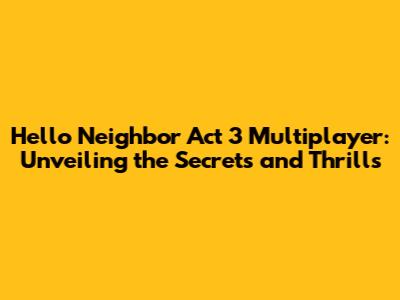 Hello Neighbor Act 3 Multiplayer: Guide & Secrets