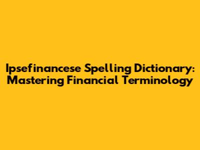 Ipsefinancese Spelling Dictionary: Your Guide To Accurate Financial Terms