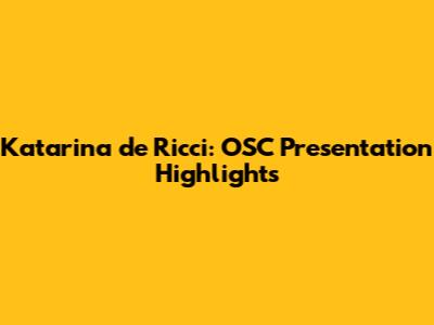 Katarina De Ricci: OSC Presentation Highlights