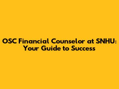 OSC Financial Counselor At SNHU: Your Guide To Success