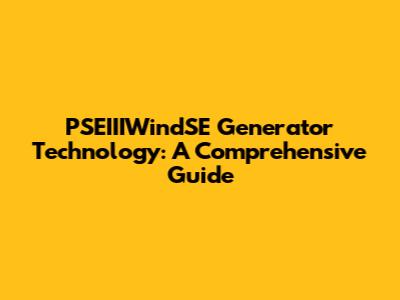 PSEIIIWindSE Generator: Powering The Future