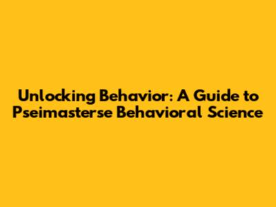 Unlocking Behavior: A Guide To Pseimasterse Behavioral Science