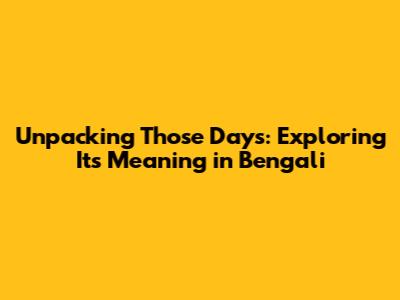 Unpacking 'Those Days': Exploring Its Meaning In Bengali