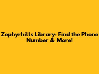 Hey guys! Are you trying to get in touch with the Zephyrhills Library? Whether you need to renew a book, check on library hours, or ask about upcoming events, having the right phone number is super important. Let's dive into how you can easily find the Zephyrhills Library phone number and other handy info.